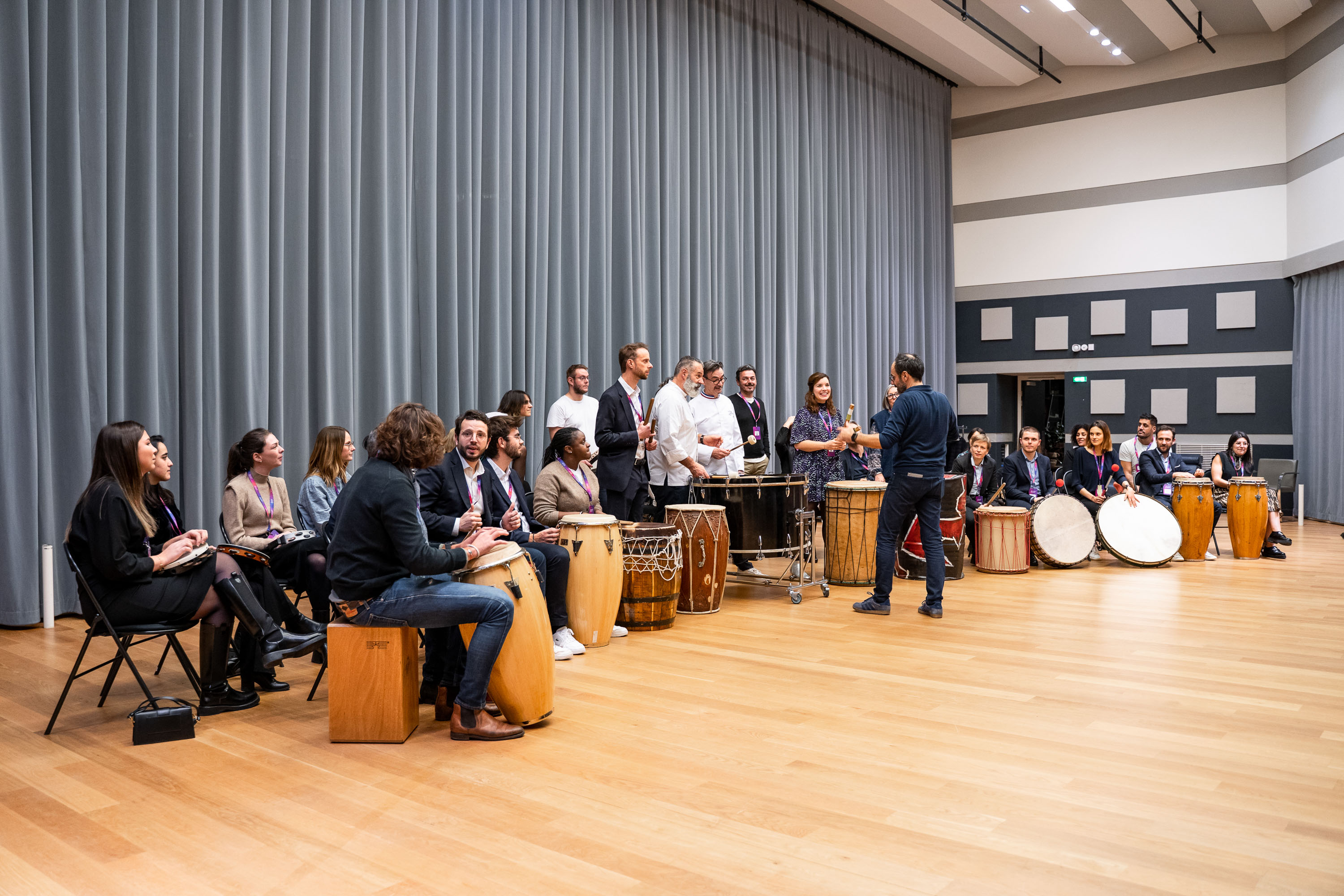 Revisitez un classique du rock ou de la chanson française en équipe ! Invitez vos collaborateurs à réinventer les paroles, guidés par des percussionnistes, et à poser leur voix pour créer ensemble un enregistrement unique !
