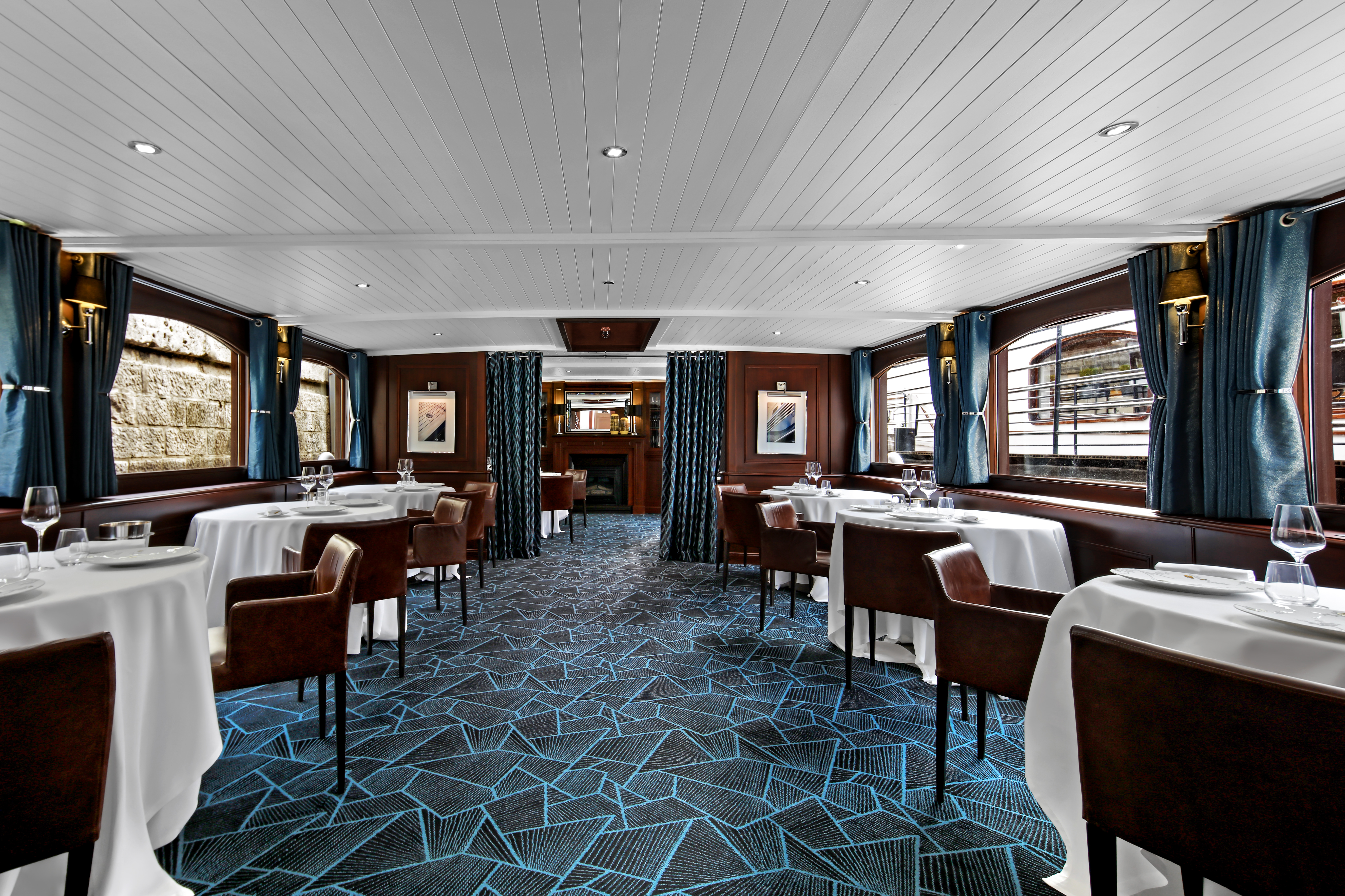 Confortablement installés, vos convives profitent d’un décor feutré dans le style Art Déco et des arts de la table d’un restaurant étoilé. Dans l’univers luxueux du yachting, chacun profite depuis sa table de vues imprenables sur les monuments de Paris.