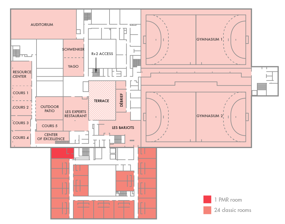 | Room Cours 2 | 47m2 | 30 | 24 | 20 | 40 | |||
