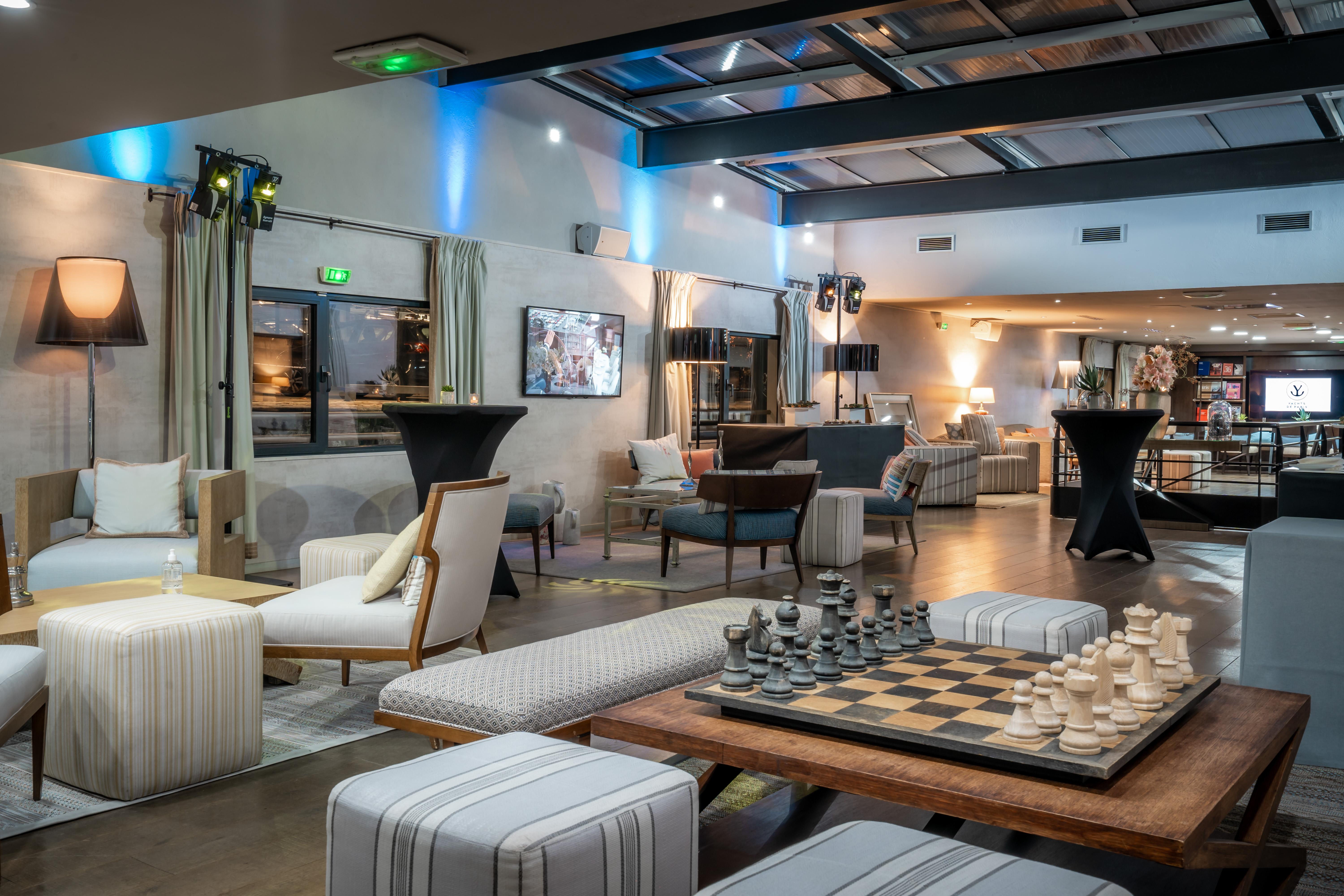 Spacious upper-level lounge for moments of conviviality and speeches, and a lower deck designed for focused meetings or team‑building activities: enjoy two levels that can host up to 150 guests for prestigious events.