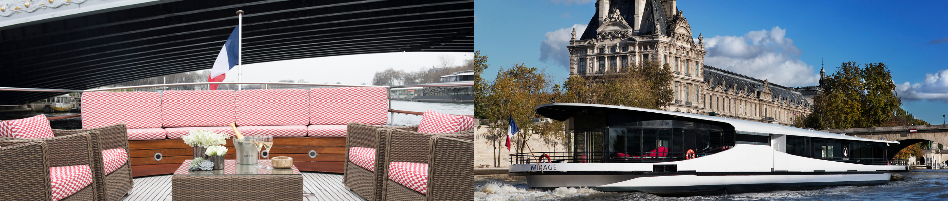 Enjoy the comfort, refinement and elegance of our exceptional yachts for your finest events. From the intimate Cachemire, now an exclusive, 100% electric cruising companion, to the Mirage and its futuristic lines, to the imposing Paquebot with its transatlantic liner style, Yachts de Paris welcomes you to its fleet's decks for special event experiences.