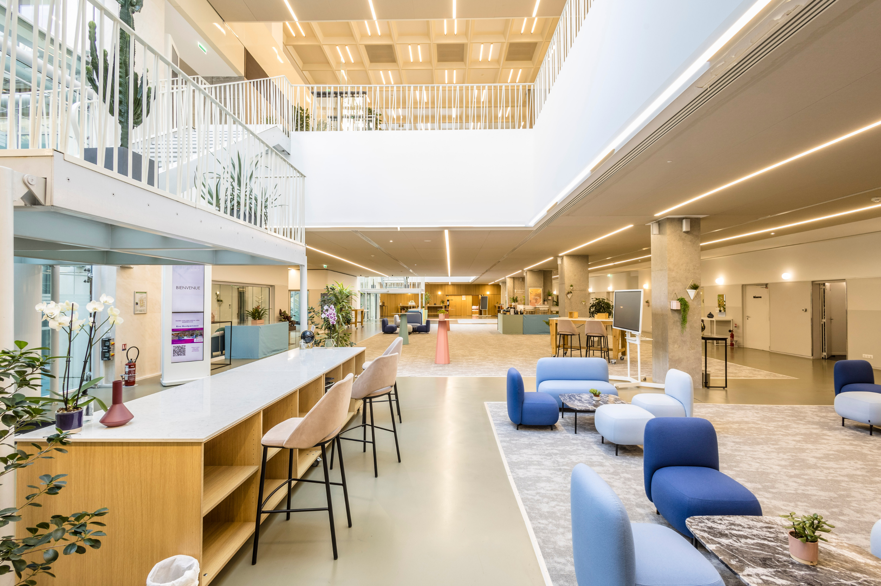Au cœur de la French Tech Paris, retrouvez-vous au #Cloud Business Center, un lieu résolument tourné vers le digital, situé dans le quartier de Bourse – Silicon Sentier. Après quelques mois de travaux au cours de l’été 2023, ce centre d’affaires présentera en septembre un tout nouveau visage. Si les lignes épurées seront conservées, le mobilier, les tissus et l’aménagement intérieur du lieu ont été repensés. Repensés pour un ressenti plus doux, plus moderne, plus « naturellement connecté ». Avec des couleurs et des matériaux plus naturels mais aussi grâce à grande végétalisation du lieu, le visiteur éprouve un sentiment de bien-être.